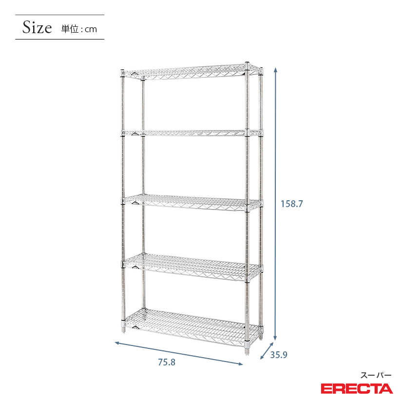 エレクター ERECTA スーパーエレクター 幅75×奥行35×高さ160 5段 AS760P1590W5