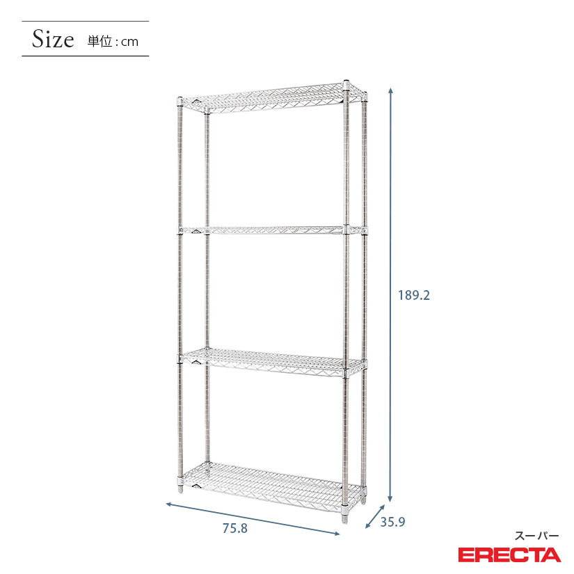 エレクター ERECTA スーパーエレクター 幅75×奥行35×高さ190 4段 AS760P1900W4