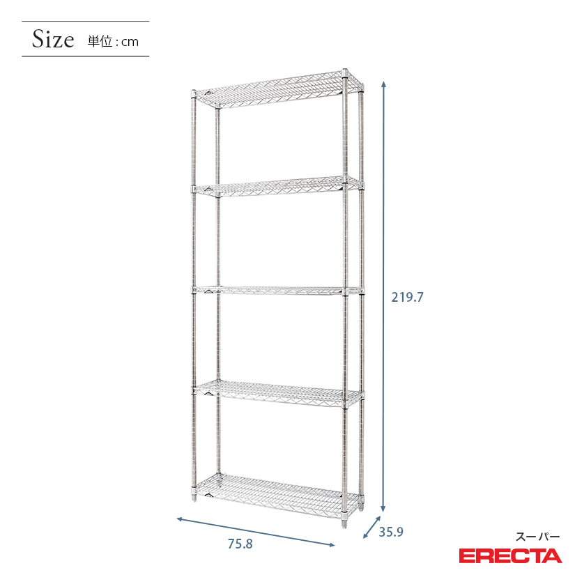 エレクター ERECTA スーパーエレクター 幅75×奥行35×高さ220 5段 AS760P2200W5