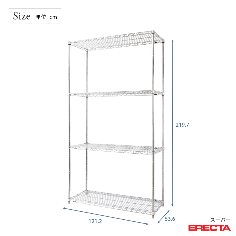 エレクター ERECTA スーパーエレクター 幅120×奥行55×高さ220 4段 BS1220P2200W4