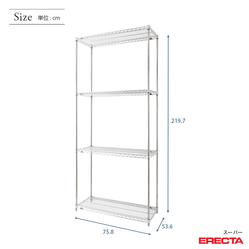 エレクター ERECTA スーパーエレクター 幅75×奥行55×高さ220 4段 BS760P2200W4