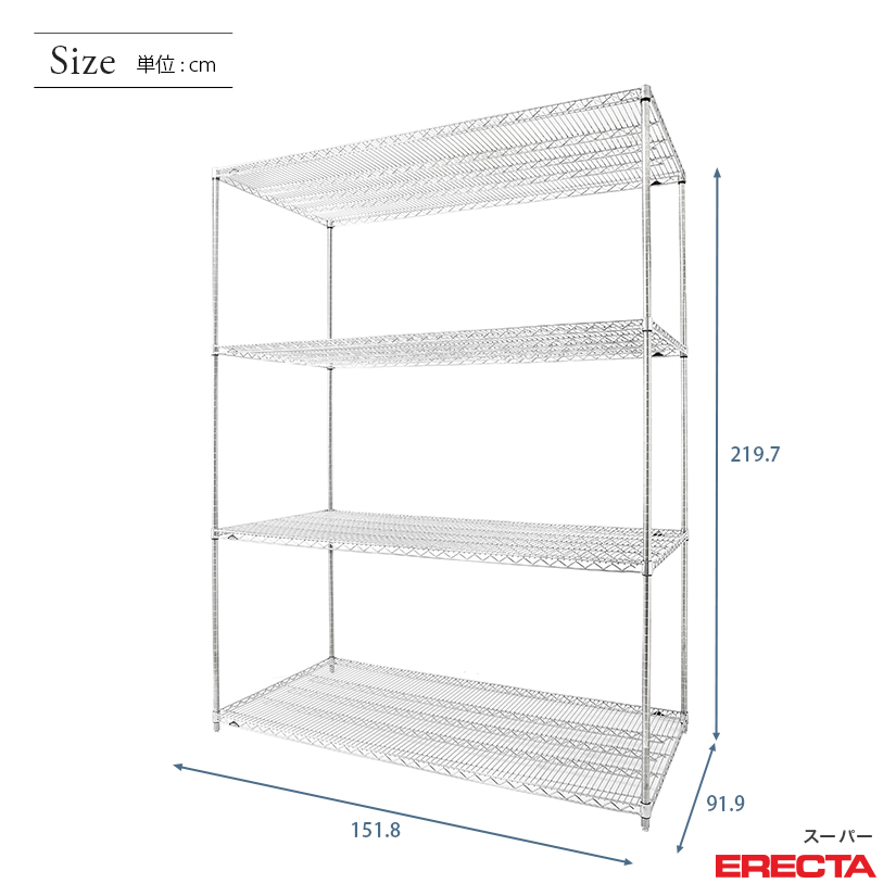 エレクター ERECTA スーパーエレクター 幅150×奥行90×高さ220 4段 LLS1520P2200W4