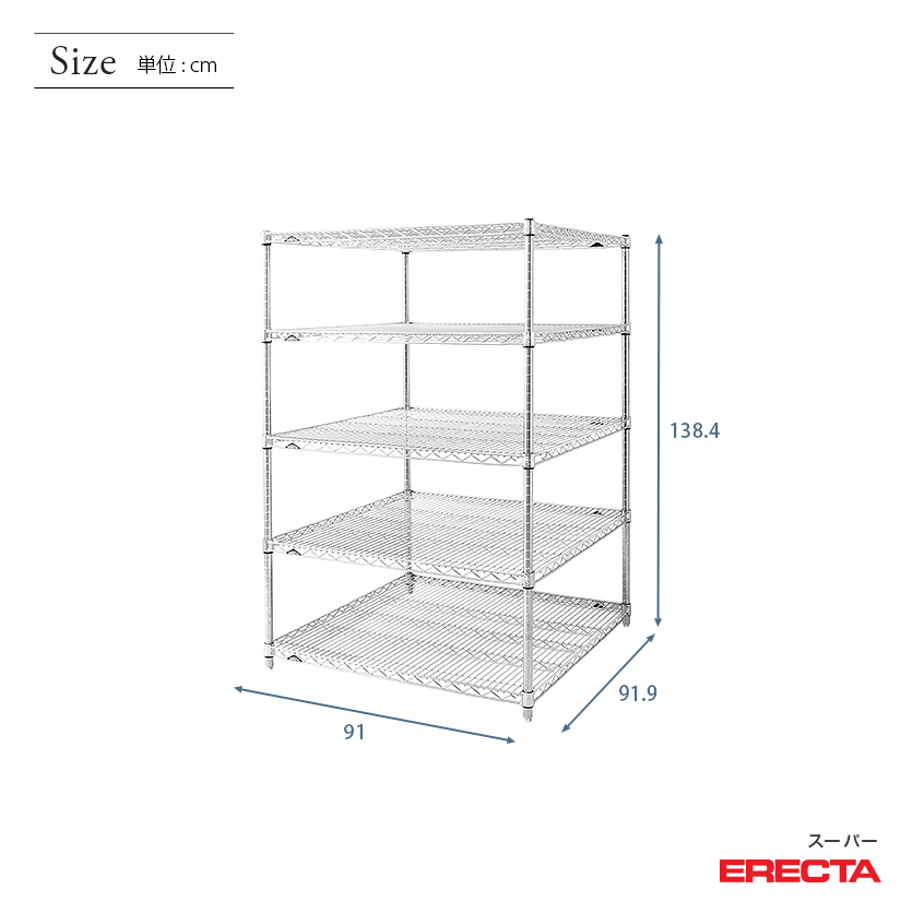 エレクター ERECTA スーパーエレクター 幅90×奥行90×高さ140 5段 LLS910P1390W5