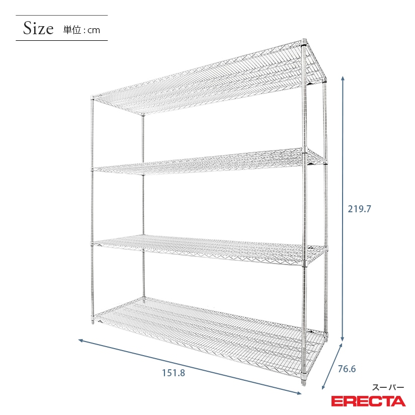 エレクター ERECTA スーパーエレクター 幅150×奥行75×高さ220 4段 LMS1520P2200W4