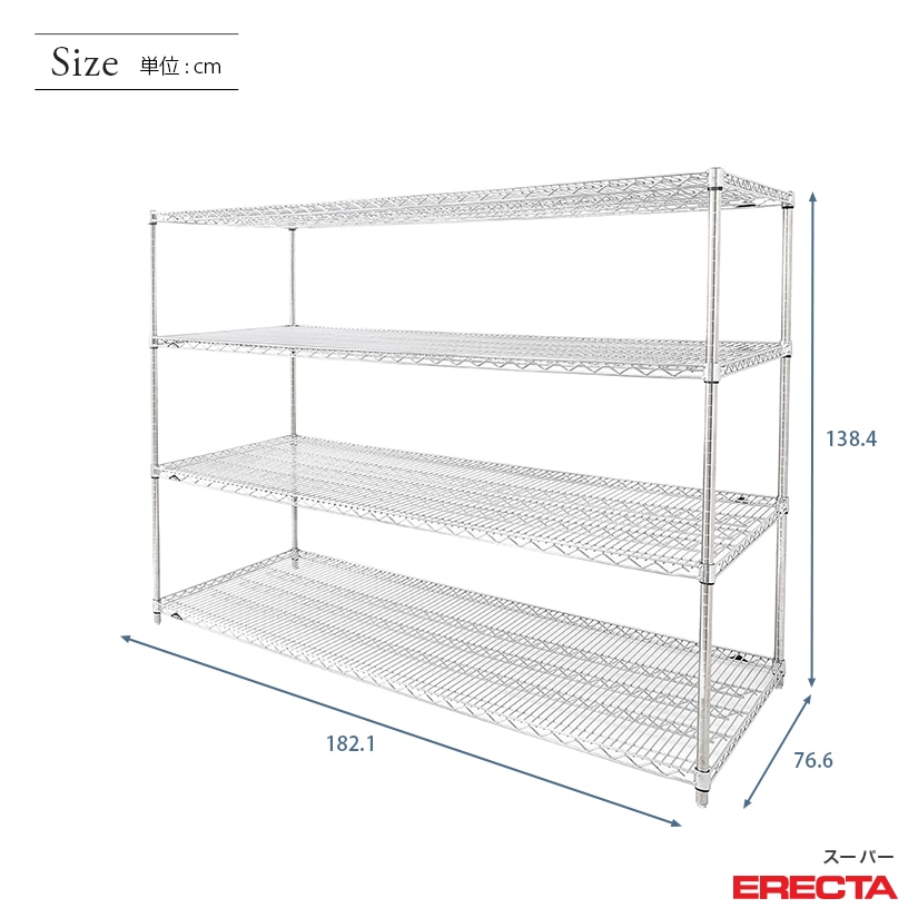 予約販売(1月中旬出荷予定)エレクター ERECTA スーパーエレクター 幅180×奥行75×高さ140 4段 LMS1820P1390W4