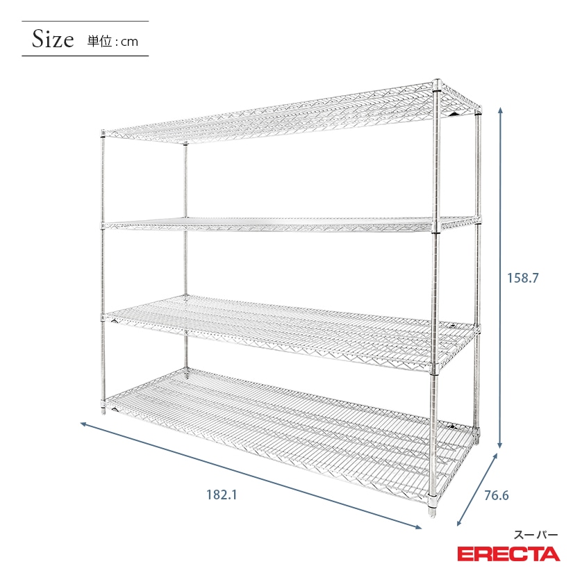 予約販売(1月中旬出荷予定)エレクター ERECTA スーパーエレクター 幅180×奥行75×高さ160 4段 LMS1820P1590W4