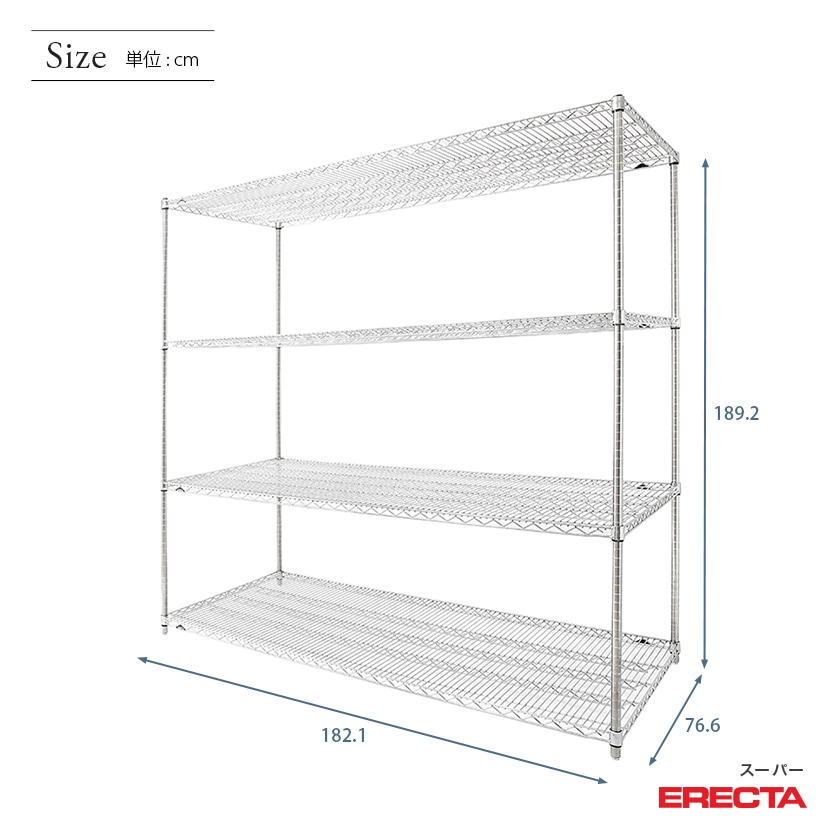 予約販売(1月中旬出荷予定)エレクター ERECTA スーパーエレクター 幅180×奥行75×高さ190 4段 LMS1820P1900W4