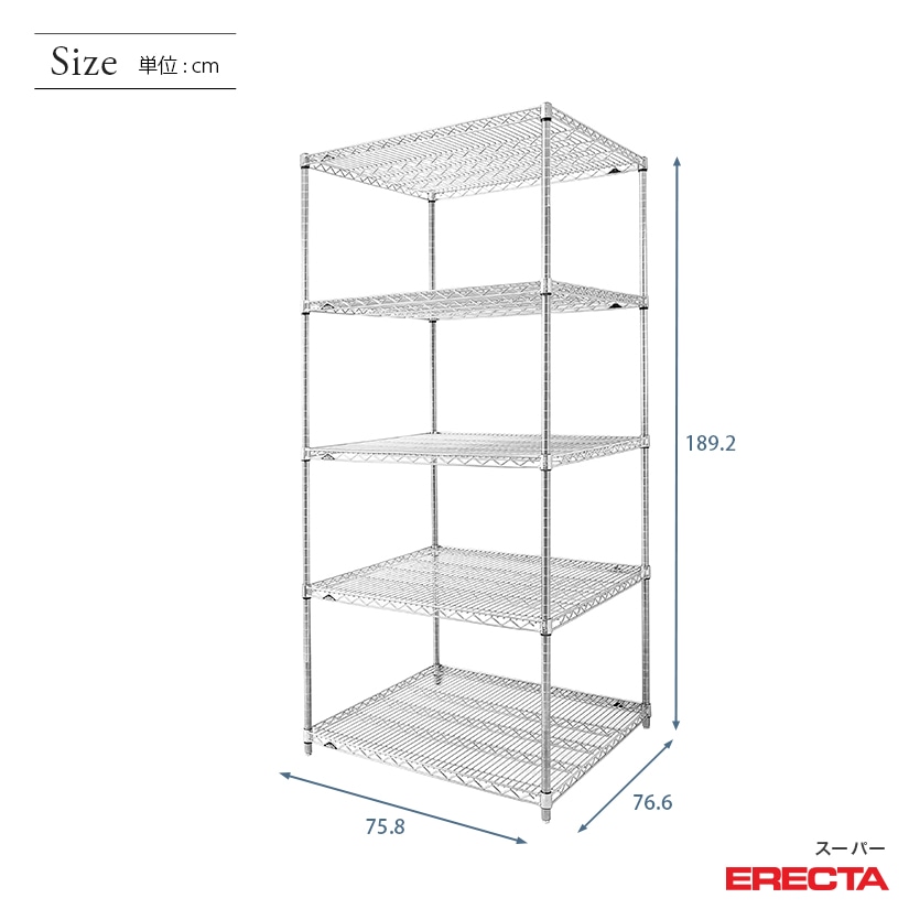 エレクター ERECTA スーパーエレクター 幅75×奥行75×高さ190 5段 LMS760P1900W5