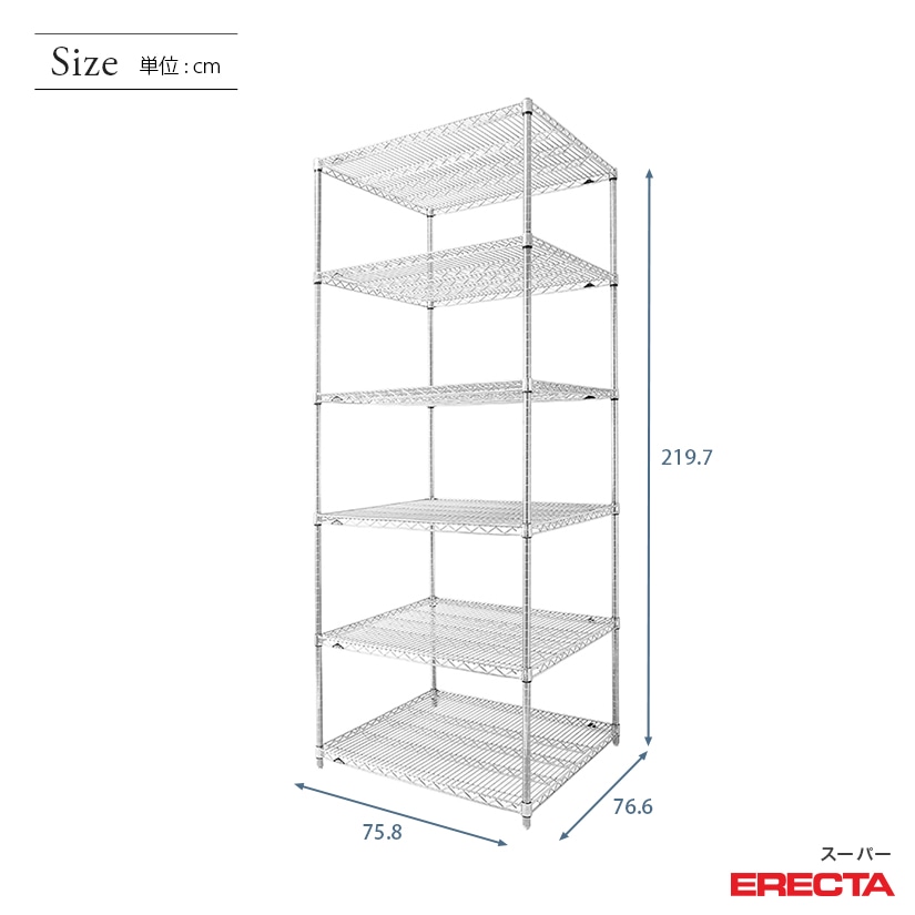 エレクター ERECTA スーパーエレクター 幅75×奥行75×高さ220 6段 LMS760P2200W6