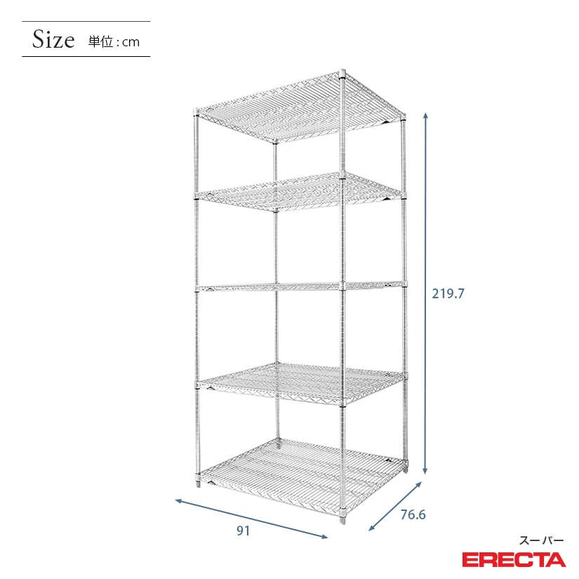 エレクター ERECTA スーパーエレクター 幅90×奥行75×高さ220 5段 LMS910P2200W5