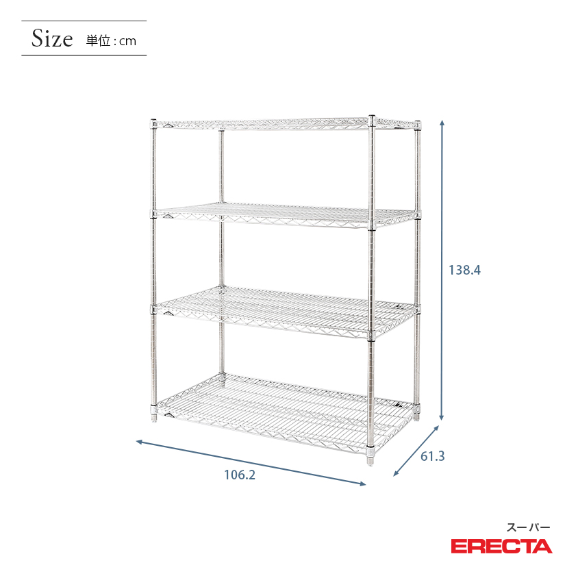 エレクター ERECTA スーパーエレクター 幅105×奥行60×高さ140 4段 LS1070P1390W4