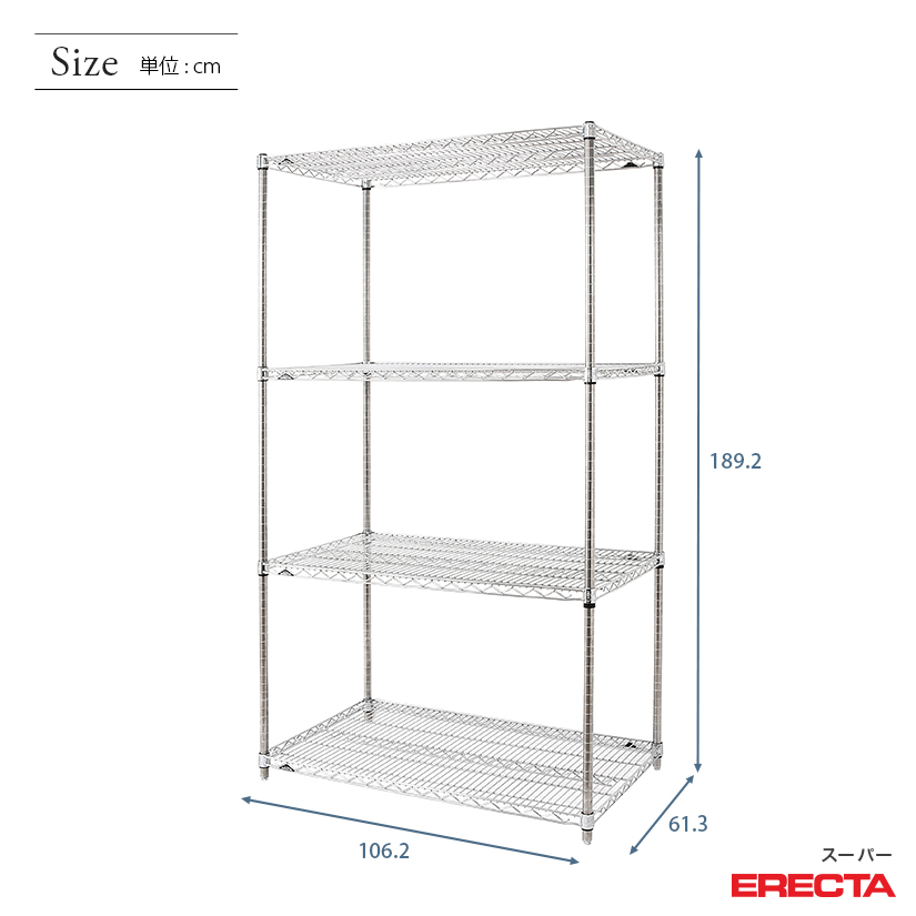 エレクター ERECTA スーパーエレクター 幅105×奥行60×高さ190 4段 LS1070P1900W4