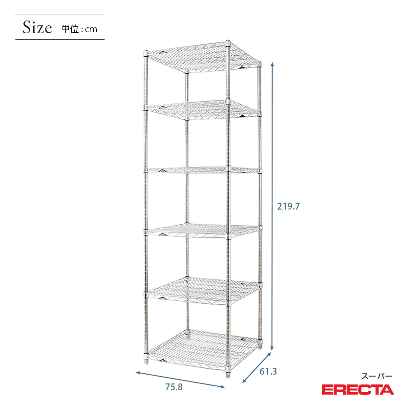 エレクター ERECTA スーパーエレクター 幅75×奥行60×高さ220 6段 LS760P2200W6
