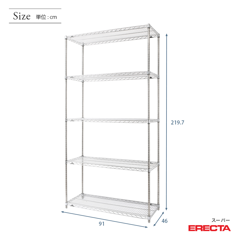 エレクター ERECTA スーパーエレクター 幅90×奥行45×高さ220 5段 MS910P2200W5