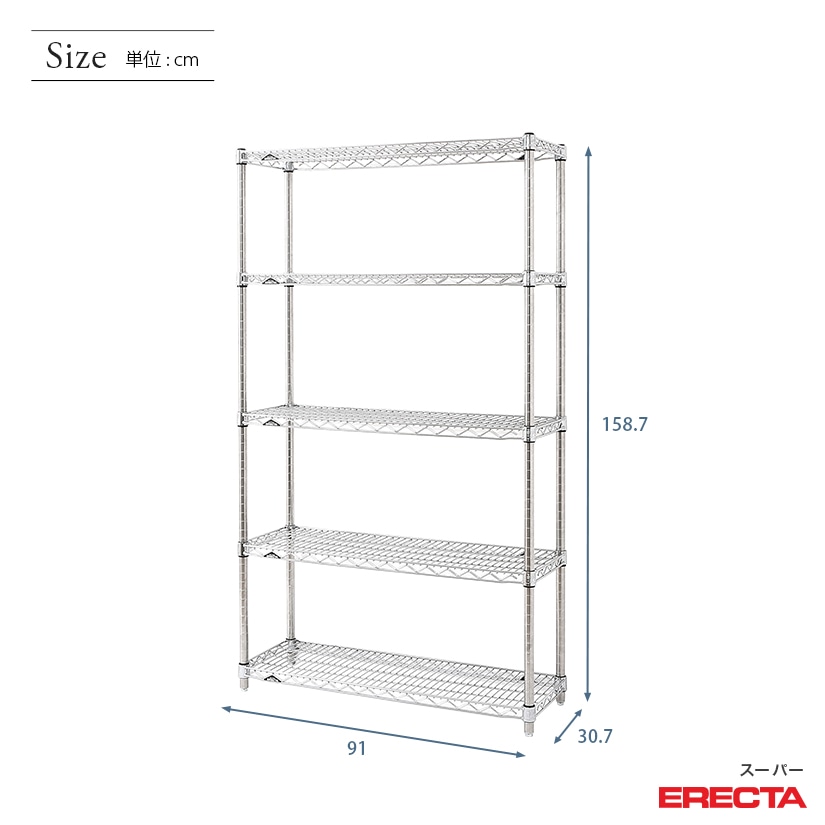 エレクター ERECTA スーパーエレクター 幅90×奥行30×高さ160 5段 SS910P1590W5
