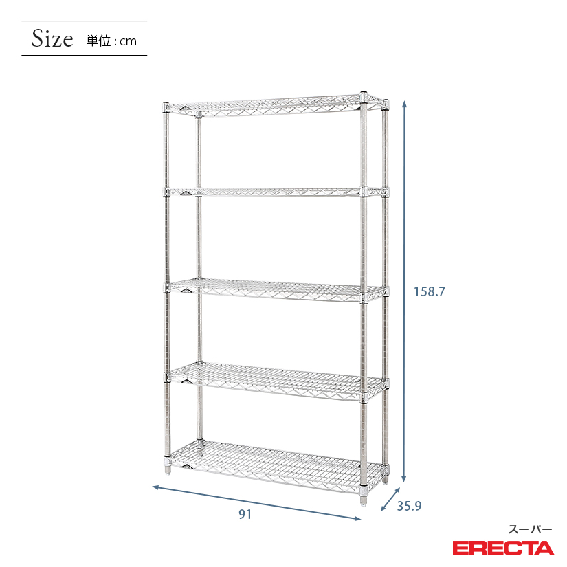 エレクター ERECTA スーパーエレクター 幅90×奥行35×高さ160 5段 AS910P1590W5