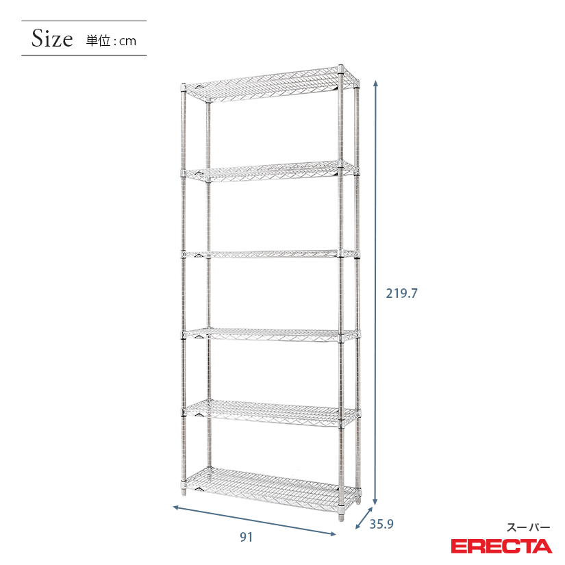 エレクター ERECTA スーパーエレクター 幅90×奥行35×高さ220 6段 AS910P2200W6