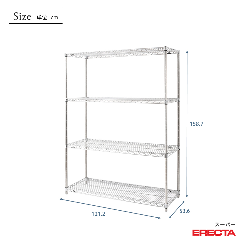 エレクター ERECTA スーパーエレクター 幅120×奥行55×高さ160 4段 BS1220P1590W4