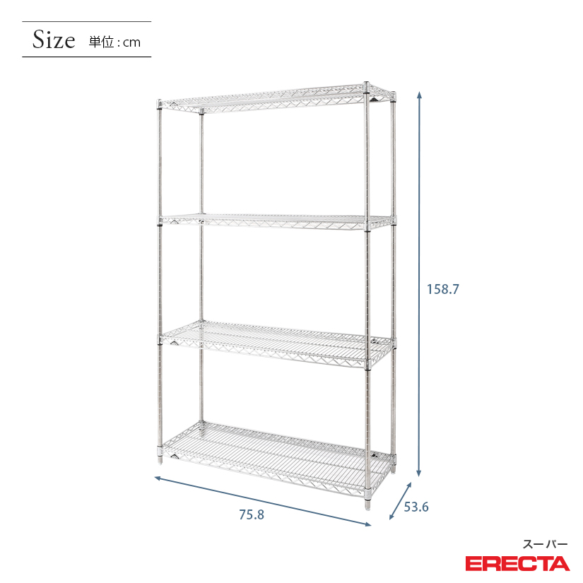 エレクター ERECTA スーパーエレクター 幅75×奥行55×高さ160 4段 BS760P1590W4