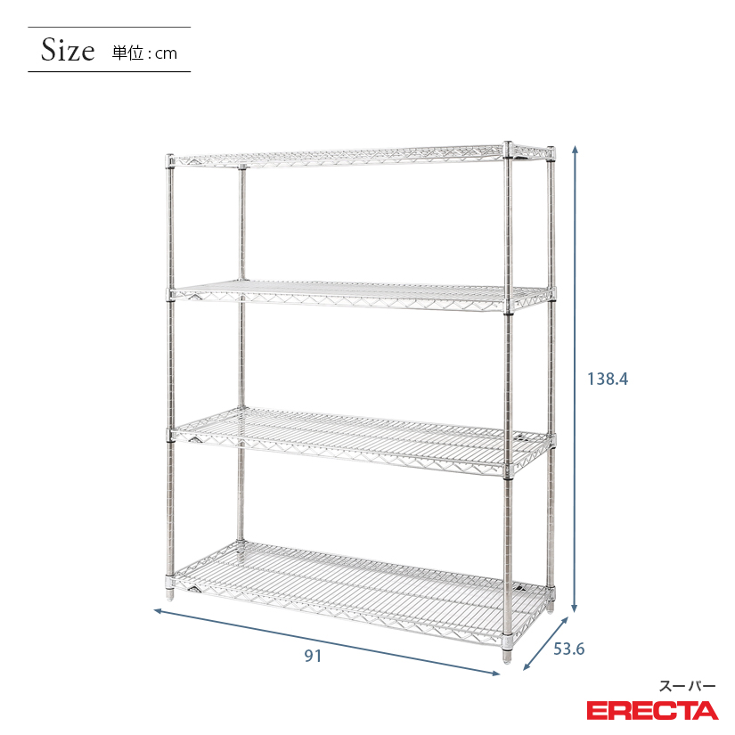 エレクター ERECTA スーパーエレクター 幅90×奥行55×高さ140 4段 BS910P1390W4