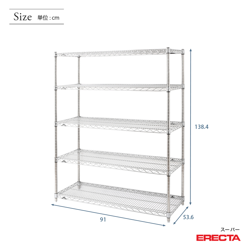 エレクター ERECTA スーパーエレクター 幅90×奥行55×高さ140 5段 BS910P1390W5