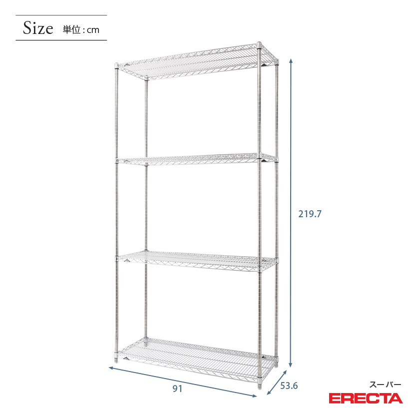 エレクター ERECTA スーパーエレクター 幅90×奥行55×高さ220 4段 BS910P2200W4