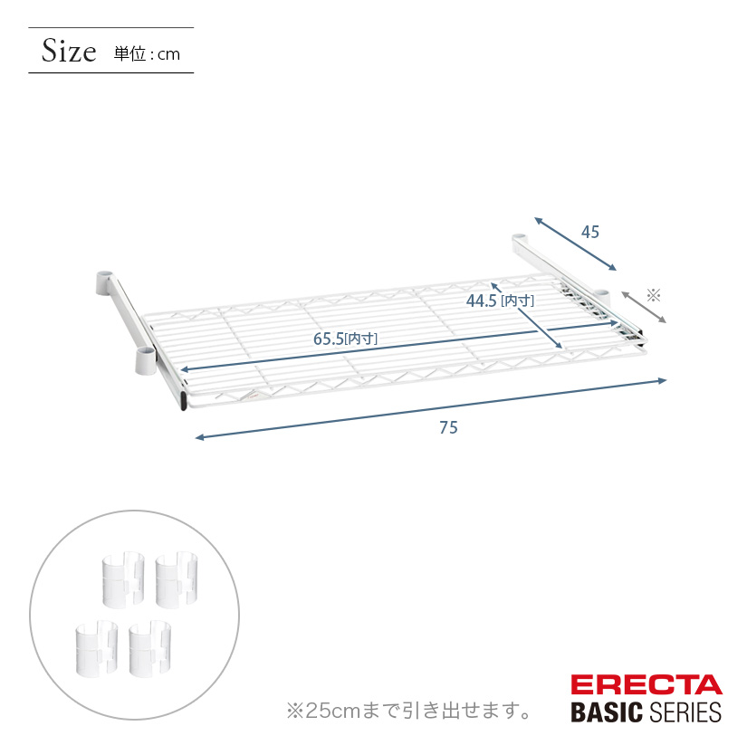 トップ > ERECTA(エレクター) > エレクターベーシックシリーズ > スライディングシェルフ > エレクター ベーシックシリーズ スライディングシェルフ ホワイト 幅75×奥行45cm BSL1830W パーツ
