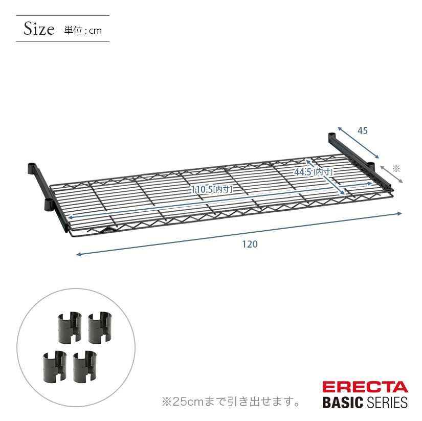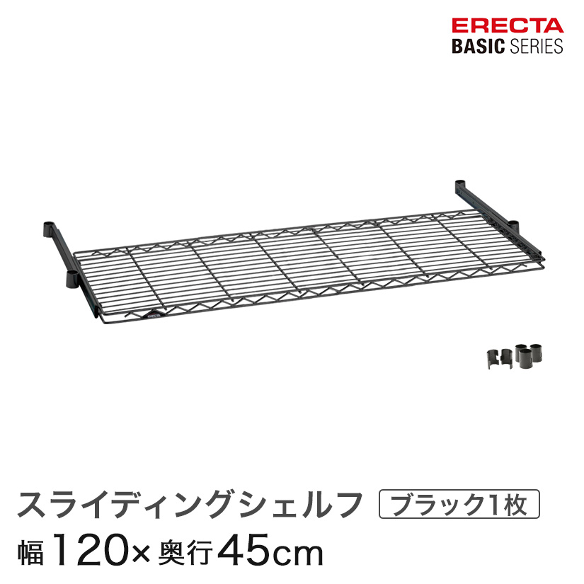 トップ > ERECTA(エレクター) > エレクターベーシックシリーズ > スライディングシェルフ > エレクター ベーシックシリーズ スライディングシェルフ ブラック 幅120×奥行45cm BSL1848B パーツ