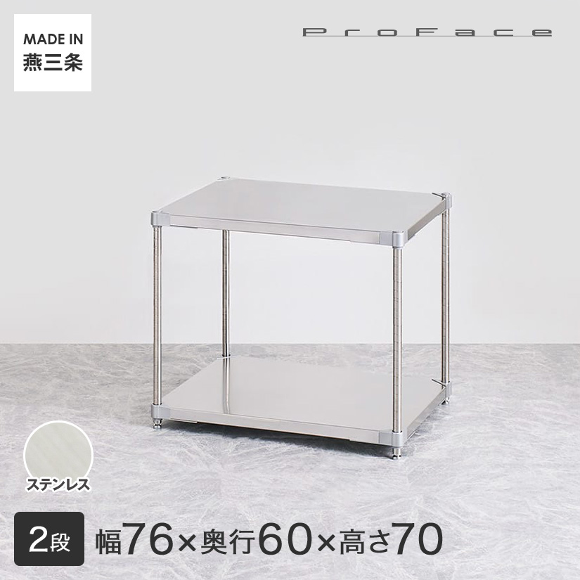 PROFACE プロフェイス SUS304ステンレス フリーラック 幅76 奥行60 高さ70 2段 (幅76.7×奥行61.5×高さ72.3cm) GSS2-6076