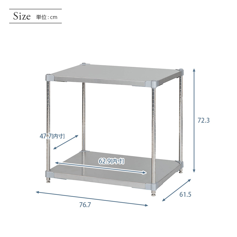 | 商品名 | PROFACE プロフェイス SUS304ステンレス フリーラック 幅76 奥行60 高さ70 2段 (幅76.7×奥行61.5×高さ72.3cm) GSS2-6076 |