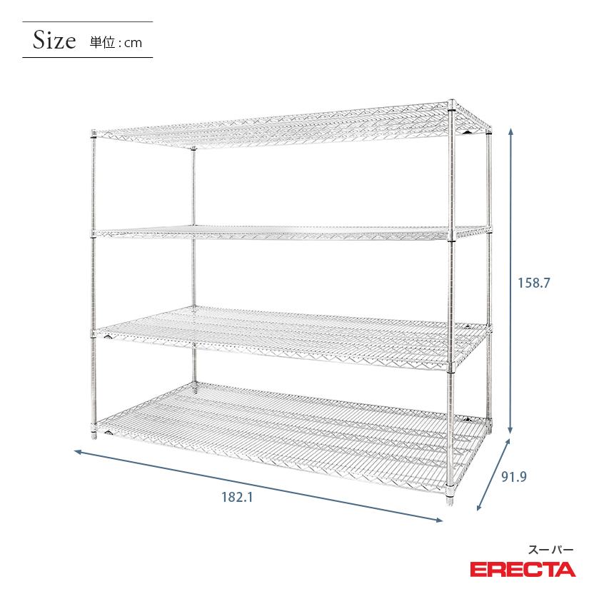 エレクター ERECTA スーパーエレクター 幅180×奥行90×高さ160 4段 LLS1820P1590W4