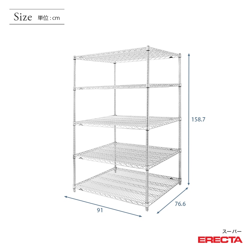 エレクター ERECTA スーパーエレクター 幅90×奥行75×高さ160 5段 LMS910P1590W5