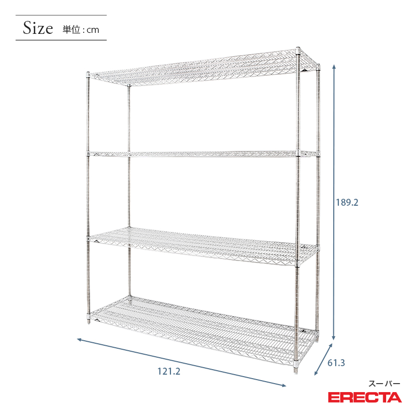 エレクター ERECTA スーパーエレクター 幅120×奥行60×高さ190 4段 LS1220P1900W4