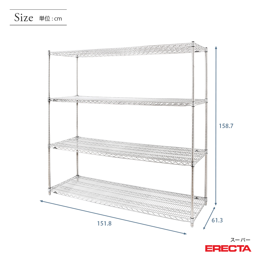 エレクター ERECTA スーパーエレクター 幅150×奥行60×高さ160 4段 LS1520P1590W4
