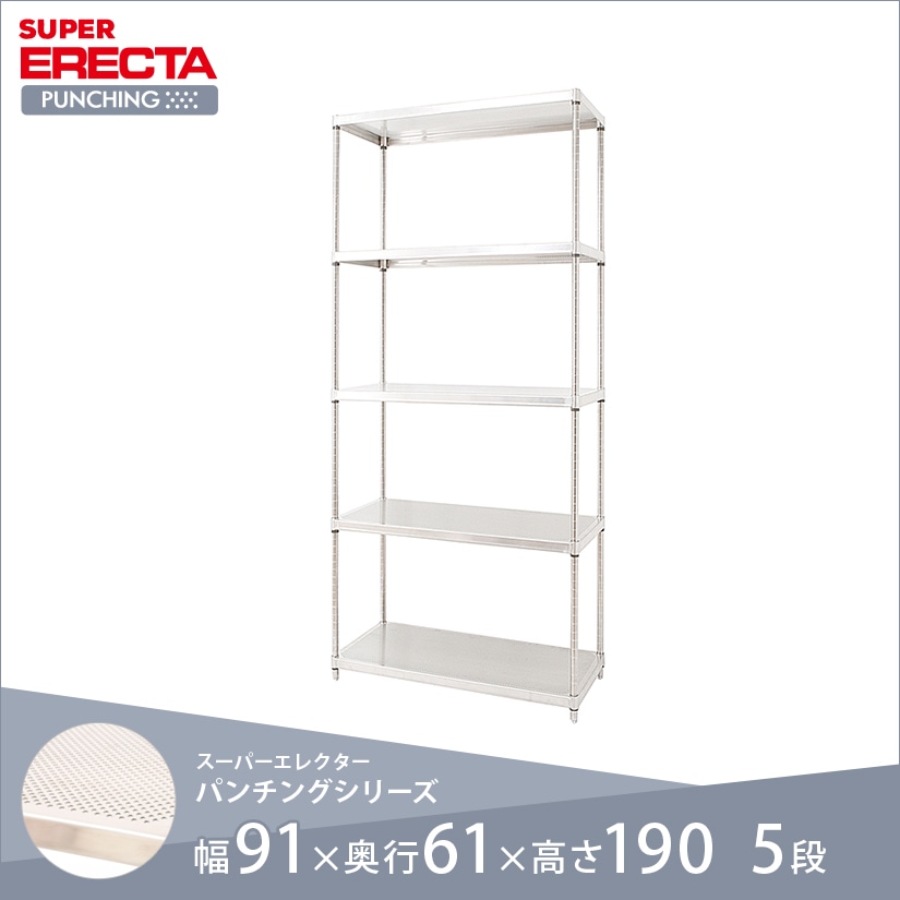 【受注生産】 パンチングソリッド エレクター ERECTA 幅91x奥行61.3cmx高さ189.2cm PSポール ダイカスト・アジャストボルト付 5段 LSS910PSPS1900W5