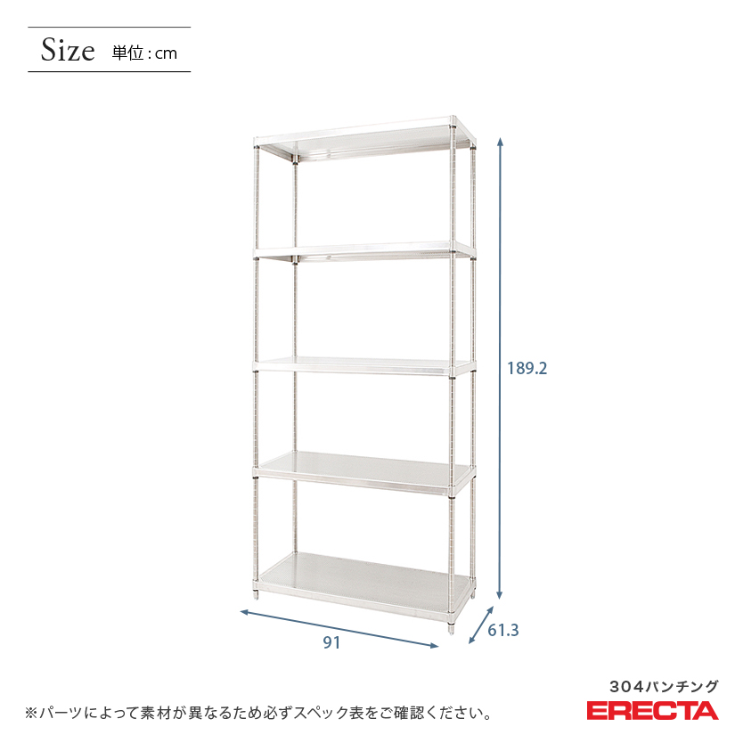 トップ > ERECTA(エレクター) > 【受注生産】 パンチングソリッド エレクター ERECTA 幅91x奥行61.3cmx高さ189.2cm PSポール ダイカスト・アジャストボルト付 5段 LSS910PSPS1900W5