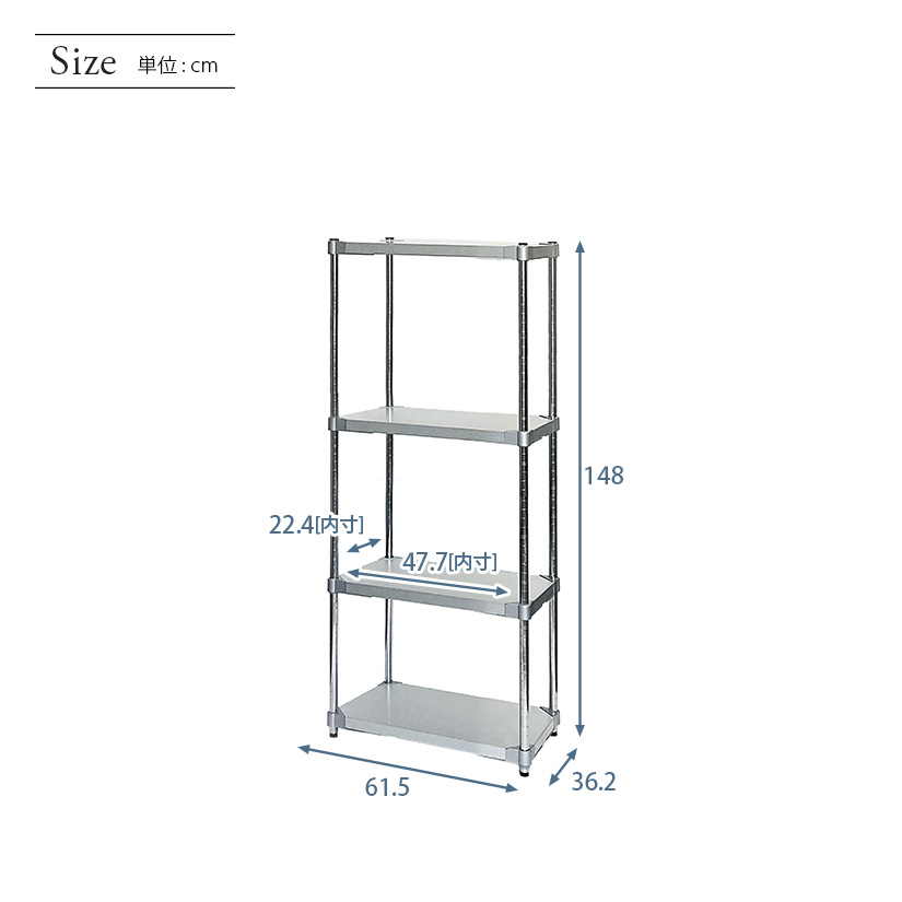 | 耐荷重 | 棚板(1枚あたり):150kg |