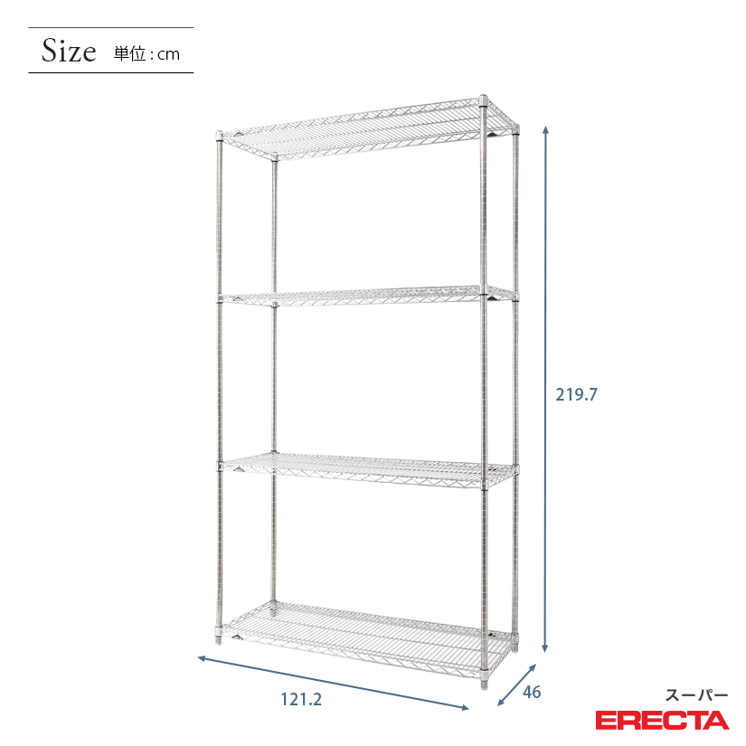 予約販売(2月中旬出荷予定) エレクター ERECTA スーパーエレクター 幅120×奥行45×高さ220 4段 MS1220P2200W4