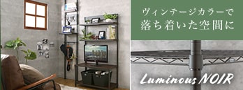 ルミナスノワールは、お洒落で高いインテリア性ながら、スチールラックならではの拡張性の高さが魅力。セット品~パーツ単品まで多数ご用意があり、統一感のある男前なヴィンテージインテリアをあなた好みで実現