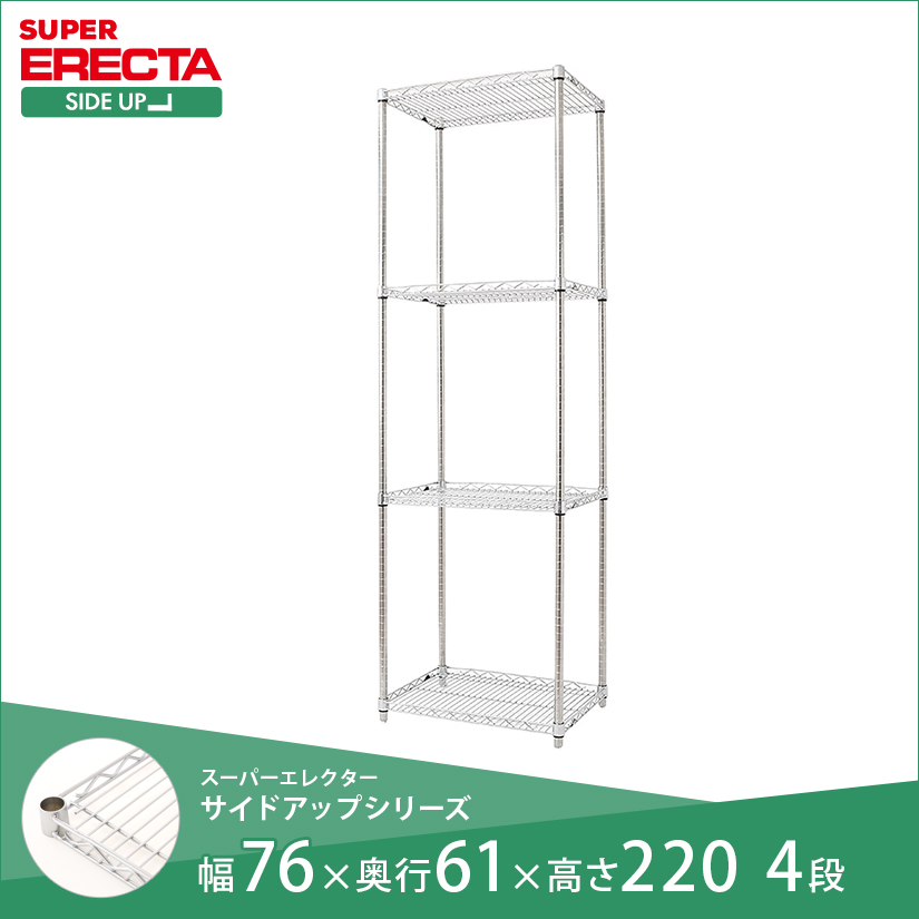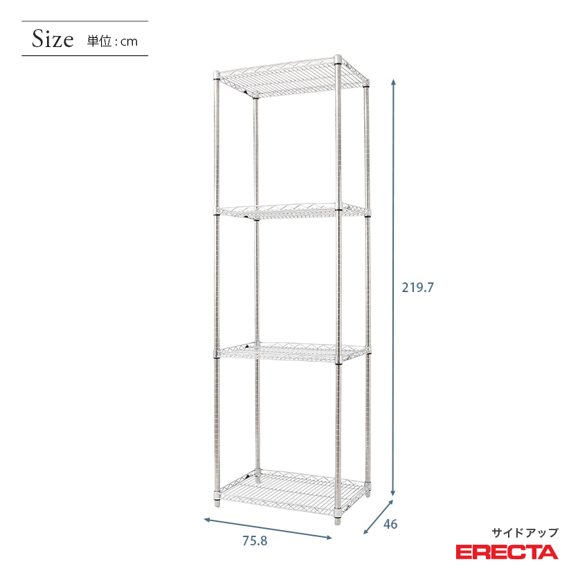 ERECTA サイドアップエレクターシェルフ 幅75.8x奥行46cmx高さ219.7cm Pポール ダイカスト・アジャストボルト付 4段 MU760P2200W4