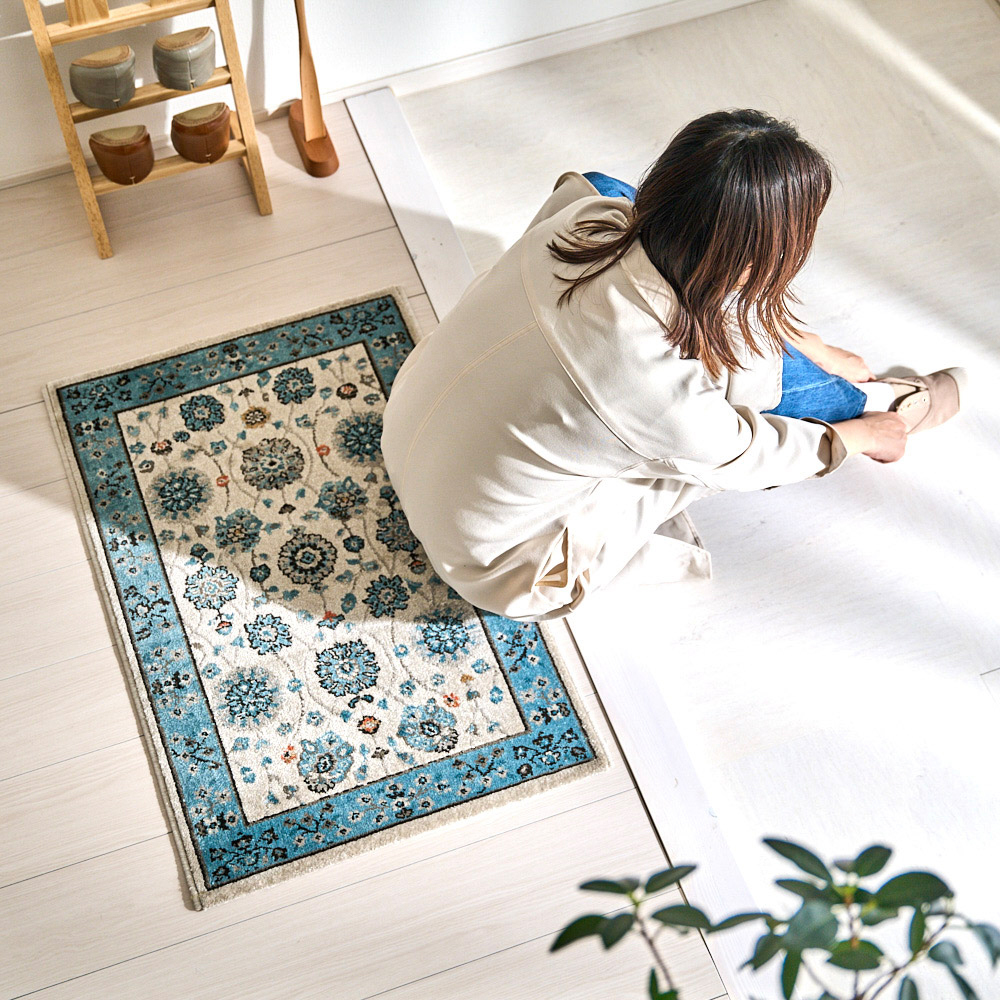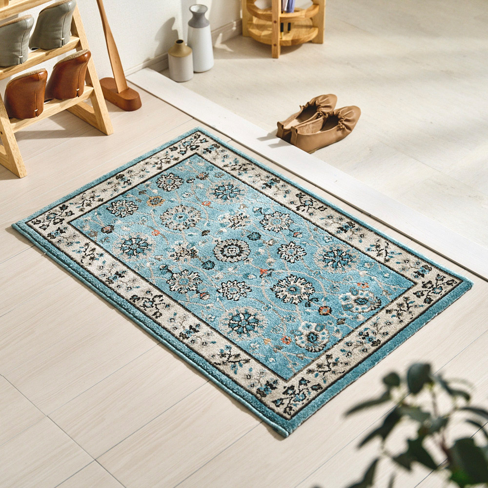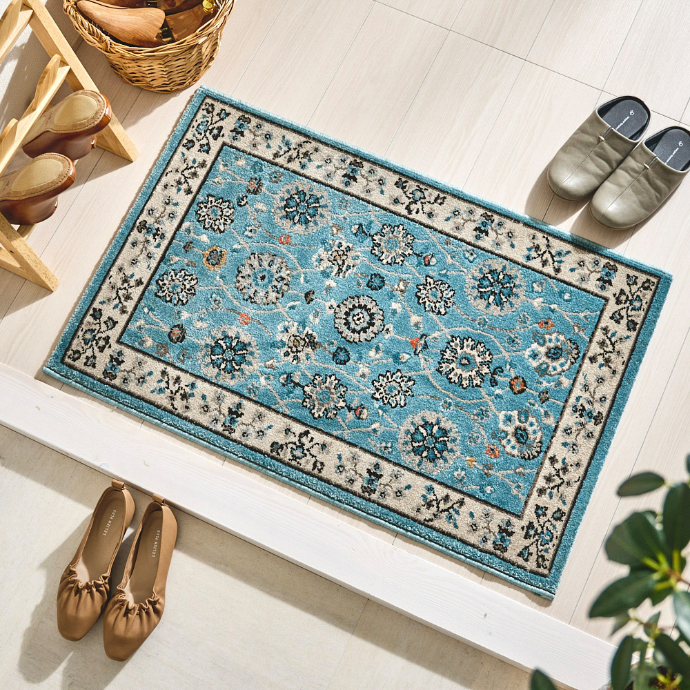 ※品切れ※【送料無料】 【最短・翌日出荷】玄関マット オリエンタルなパターンが美しく爽やかなカラーリング <パメラ>