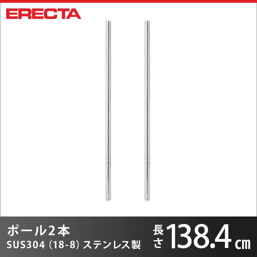 ポール 2本セット エレクター ERECTA 高さ138.4cm オールSUS304ステンレス ダイカスト・アジャストボルト付 PS1390W-2
