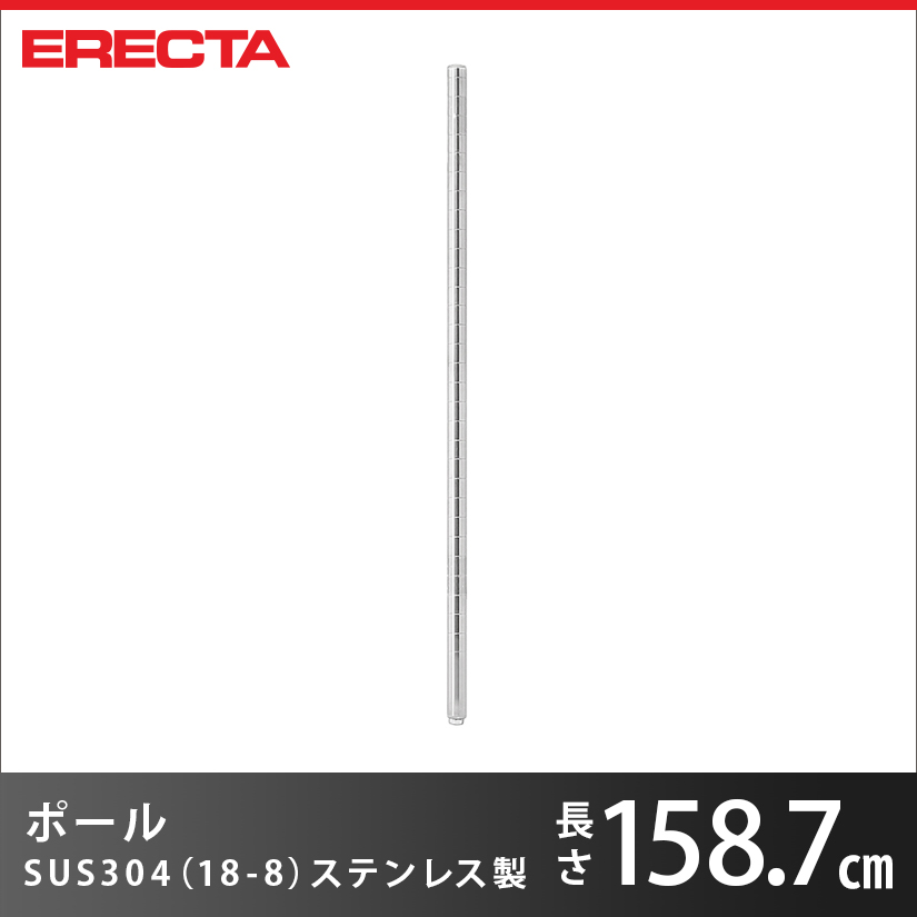 ポール エレクター ERECTA PS1590 高さ158.7cm オールSUS304ステンレス ダイカスト・アジャストボルト付 PS1590W