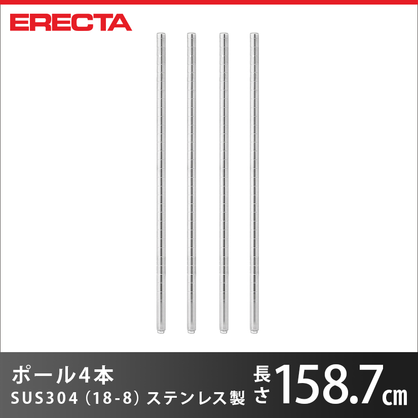 ポール 4本セット エレクター ERECTA 高さ158.7cm オールSUS304ステンレス ダイカスト・アジャストボルト付 PS1590W-4