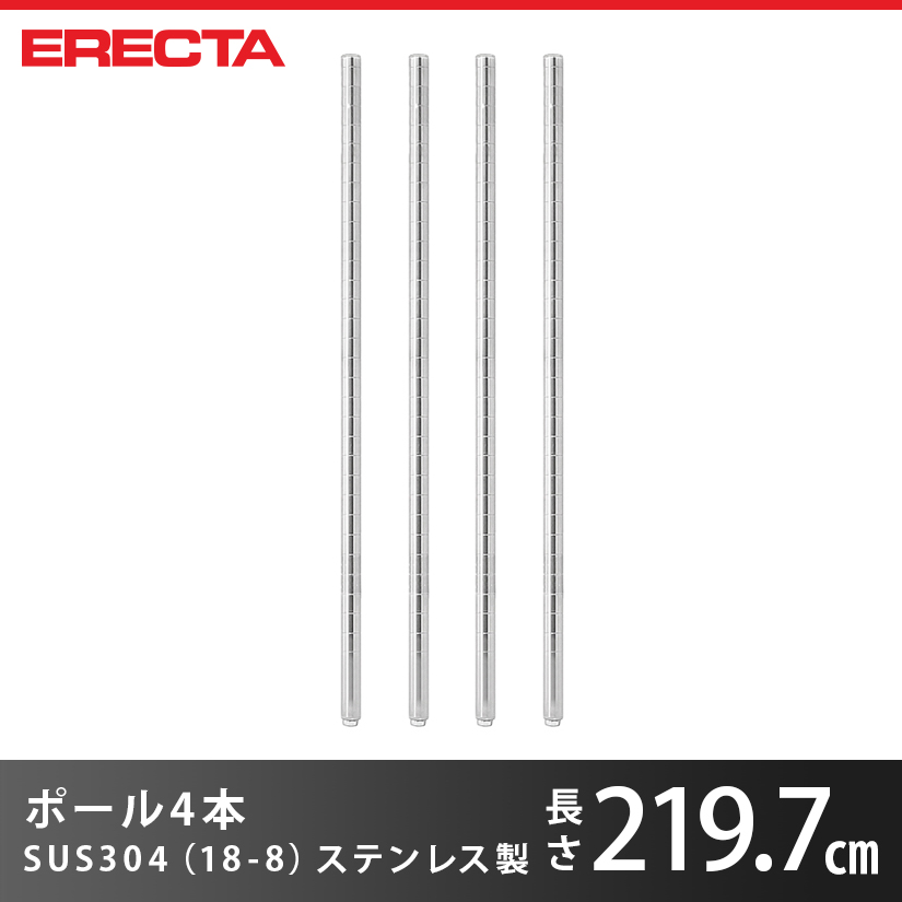 ポール 4本セット エレクター ERECTA 高さ219.7cm オールSUS304ステンレス ダイカスト・アジャストボルト付 PS2200W-4