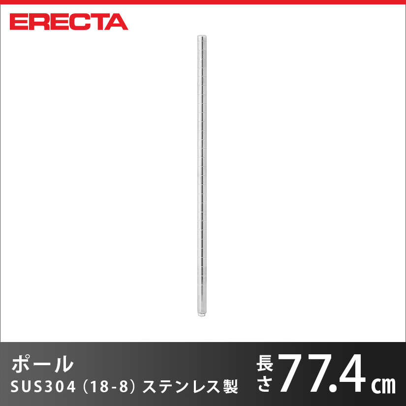 トップ > ERECTA(エレクター) > エレクターパーツ > ポール エレクター ERECTA PS755 高さ77.4cm オールSUS304ステンレス ダイカスト・アジャストボルト付 PS755W