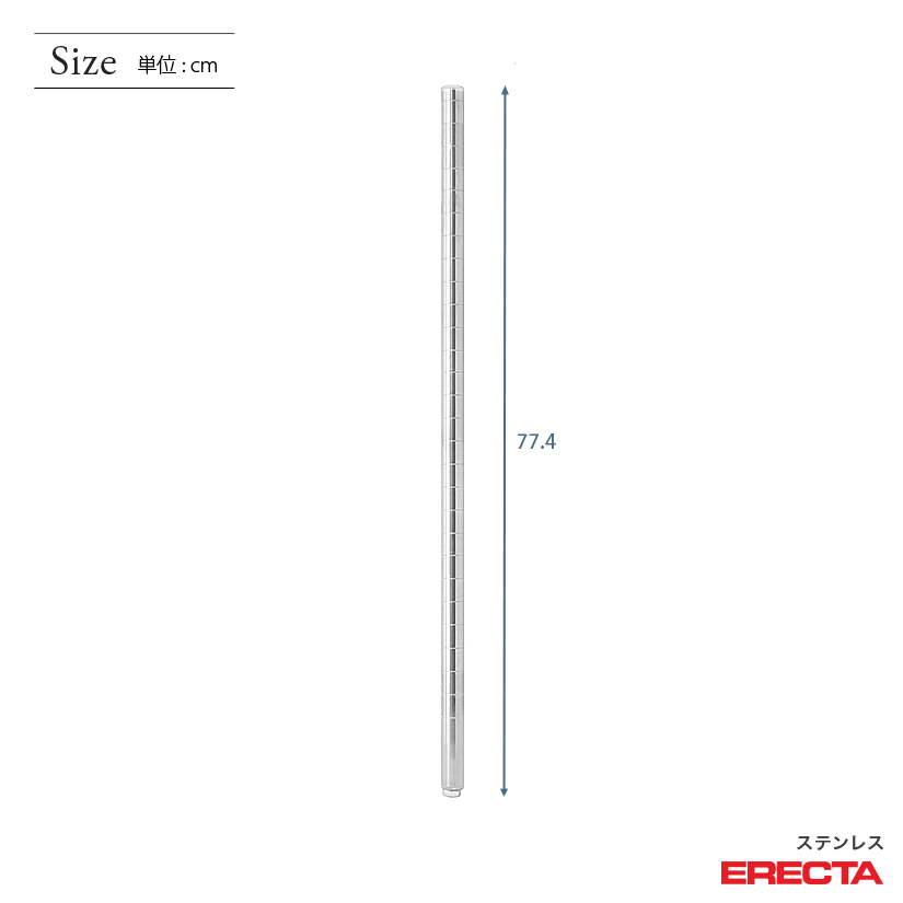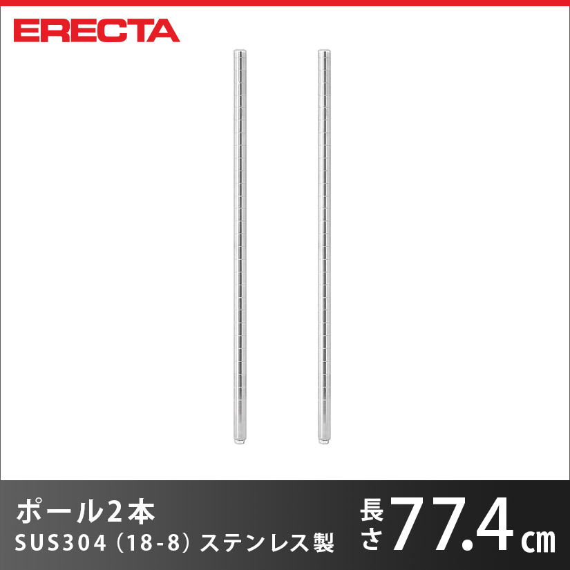 トップ > ERECTA(エレクター) > エレクターパーツ > ポール 2本セット エレクター ERECTA 高さ77.4cm オールSUS304ステンレス ダイカスト・アジャストボルト付 PS755W-2