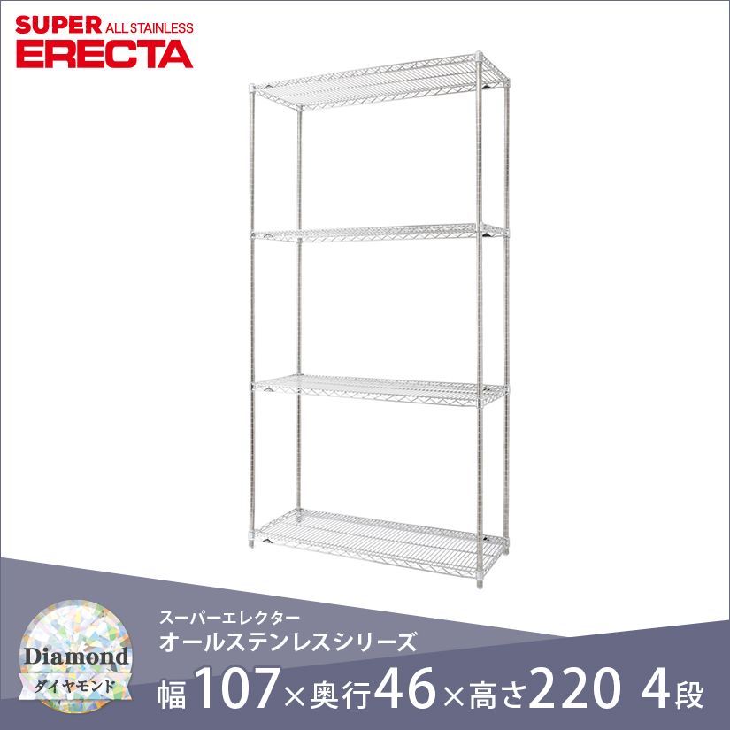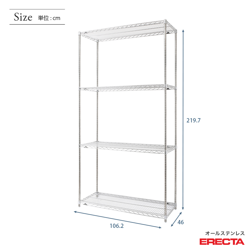 トップ > ERECTA(エレクター) > 予約販売(11月中旬出荷予定) エレクター ERECTA オールステンレスエレクター 幅105×奥行45×高さ220 4段 SMS1070PS2200SW4