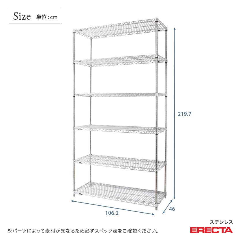 予約販売(11月中旬出荷予定) エレクター ERECTA ステンレスエレクター 幅105×奥行45×高さ220 6段 SMS1070PS2200W6