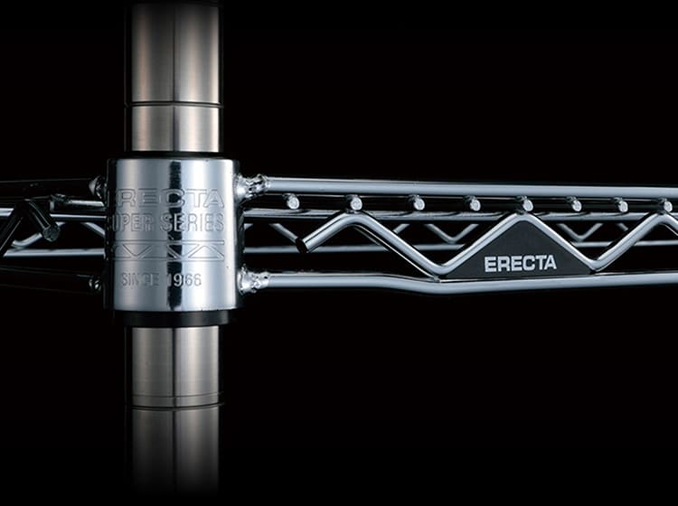 その元祖であるエレクターシェルフは、ワイヤーが三角形に曲がったジグザグの「トラス構造」部分により非常に高い耐荷重を誇ります。